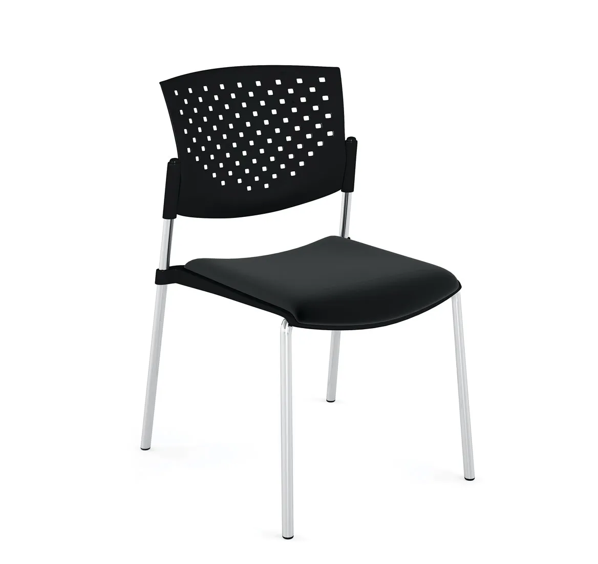 4 ножки с толщина стенки 1,5 мм. Ножки с хромированной отделкой, устойчивы к царапинам. Штабелируемая функция: стулья можно укладывать вертикально.
