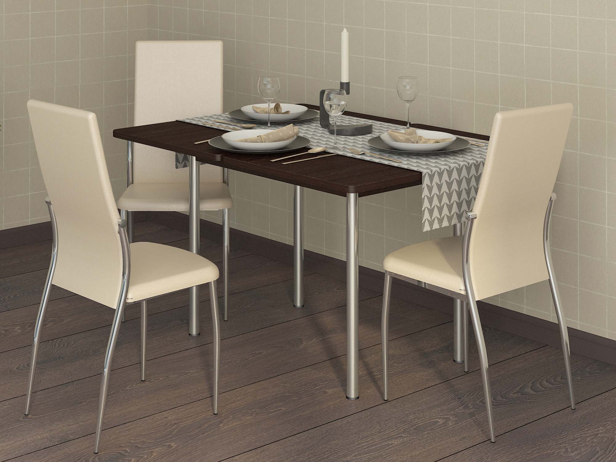 Выбрать стол для маленькой кухни сложнее всего. Именно для таких случаев созданы раздвижные столы. Их особенность – специфическая конструкция. Столешница разделена на 2 части и стол увеличивается за счет дополнительной секции под ними. Несмотря на то, что не всем нравится такая форм, современные конструкции оснащены удобным механизмом, позволяющим просто разложить стол в любое время и так же быстро его собрать. Эти столы идеальны, так как занимают мало места в собранном состоянии и спасают ситуацию, когда нужно сохранить больше свободного пространства.