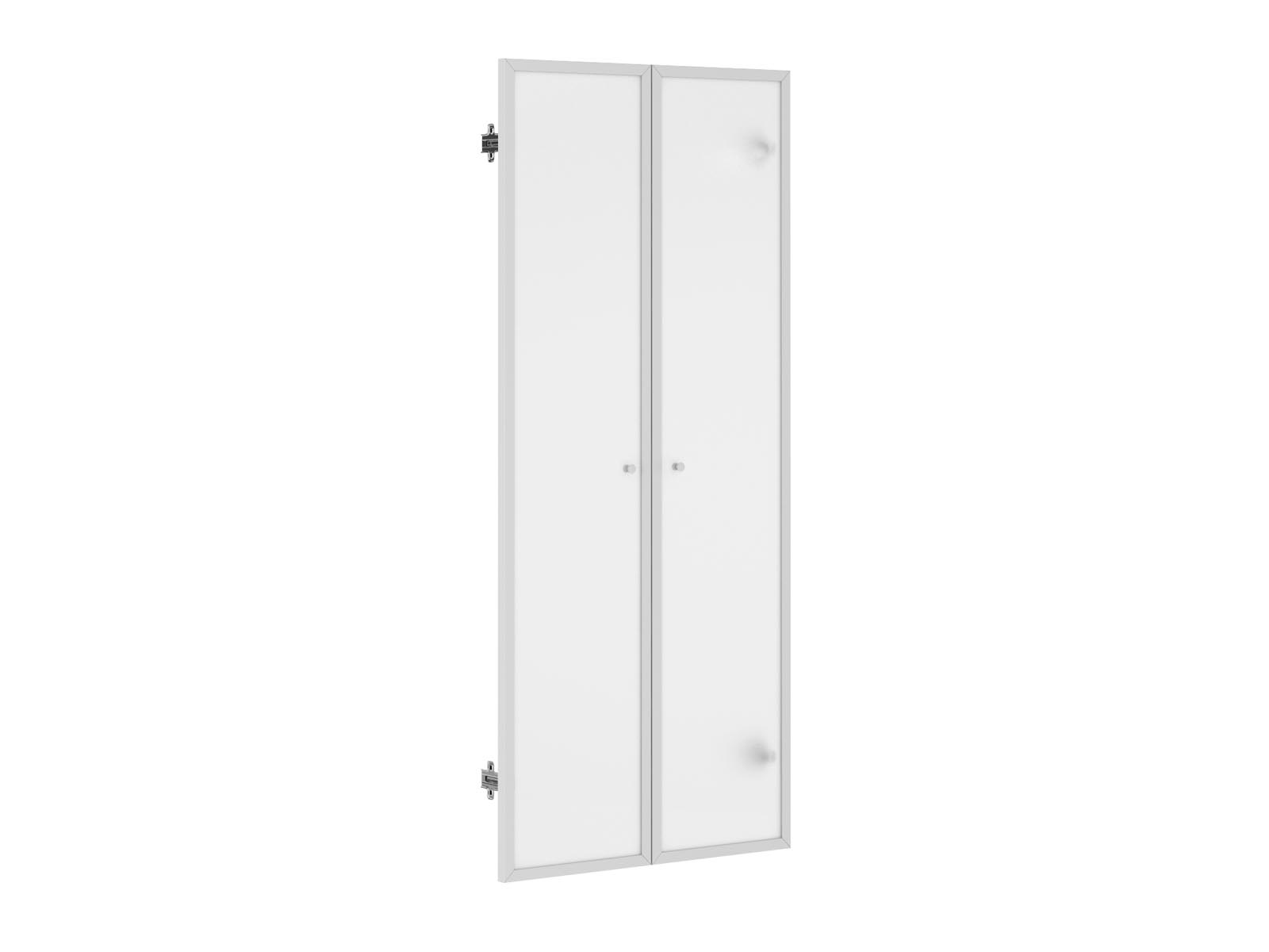 Двери стеклянные: закаленные, матовые в алюминиевой раме, 20 мм (стекло 4 мм). Ручки-кнопки пластиковые.