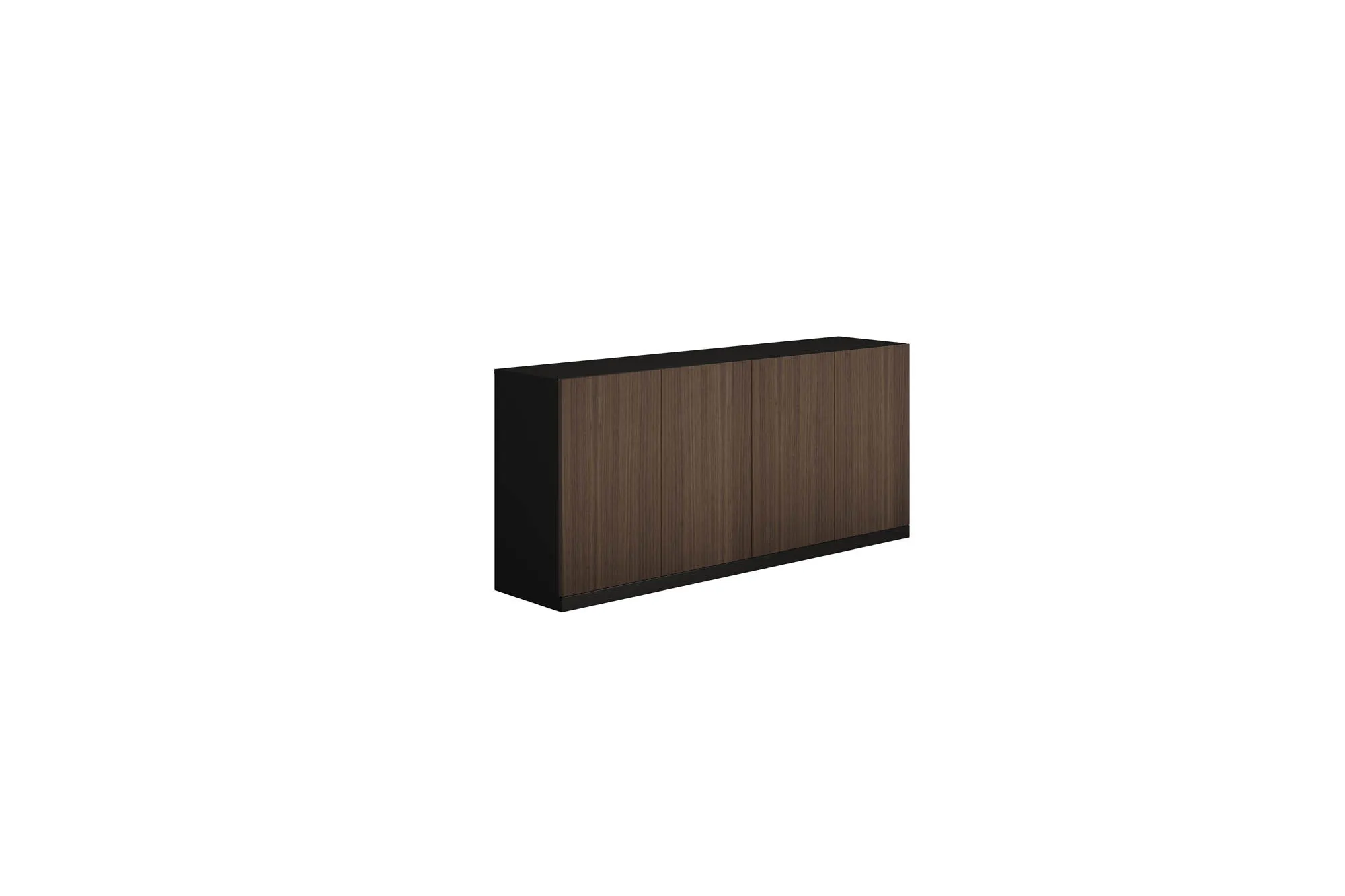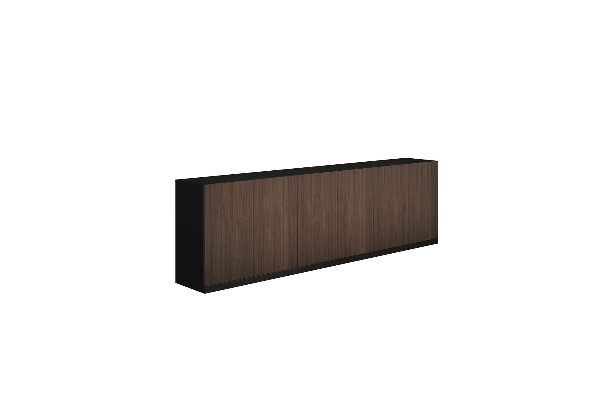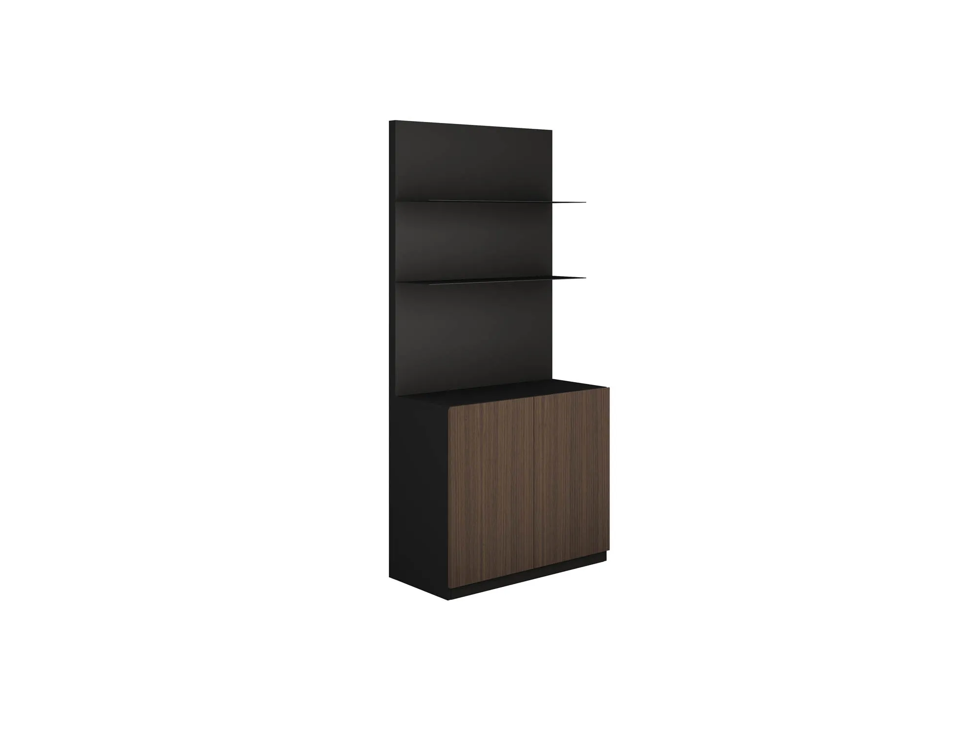 Шкаф с консольными полками: В нижней части шкафа распашные дверки, в верхней части 2 открытые полки толщиной 18 мм чёрного цвета. Корпус шкафа и задняя панель: меламин. Дверки: шпон.