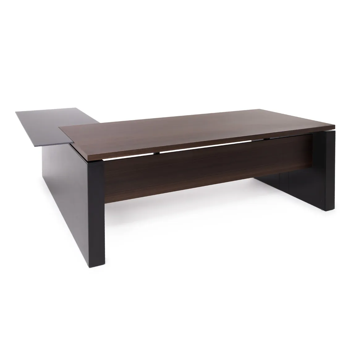 Офисный стол для руководителя эргономичен и помогает заботиться об осанке во время долгого рабочего дня. Высококачественные материалы, из которых изготовлена мебель, позволяют пользоваться столом много лет без замены.