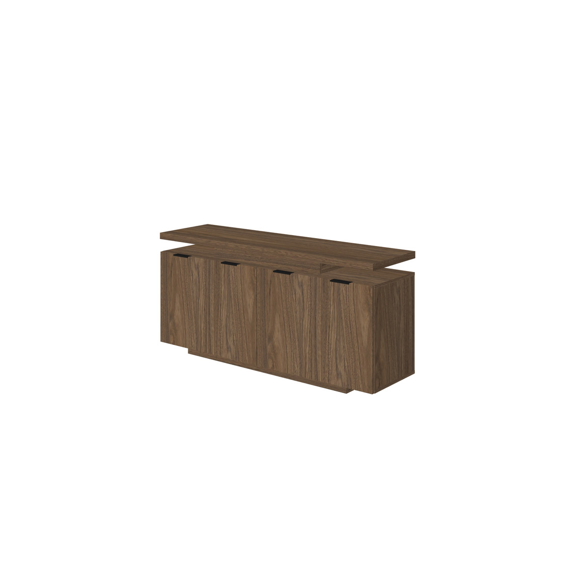 Внутреннее пространство греденции разделено двумя перегородками на три секции. Две боковые секции оснащены стационарными полками и закрыты распашными фасадами высотой 648 мм, установленными на регулируемые петли. Метод крепления петель к корпусу тумбы – евровинты. Центральная секция греденции оснащена четырьмя выдвижными ящиками, установленными на роликовые направляющие серого цвета. Верхний ящик оснащен врезным замком. Распашные фасады и выдвижные ящики греденции оснащены механизмами плавного закрывания. Лицевая фурнитура – металлическая, тип «закрытая скоба», цвет «серебристый», прямоугольной формы со скошенной под 45° лицевой гранью, длина не менее 135 мм (межцентровое расстояние 96 мм).